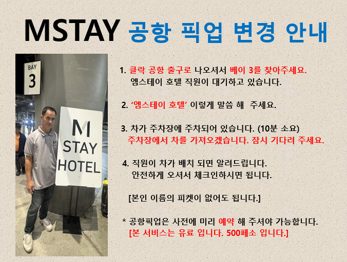※클락 공항 픽업은 요청하신 경우에 한하여, 유료로 제공됩니다.※
